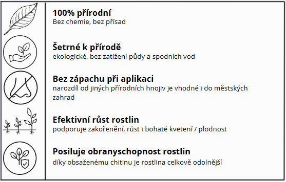 Naše hnojivo z hmyzího trusu pochází z larev potemníka moučného, které přeměňují organický odpad v přírodní zázrak plný živin a prospěšných mikrobů. Larvy jsou krmeny jen kvalitním krmivem, sestávajícím převážně z vedlejších produktů z obilovin, ovoce a zeleniny, samotné larvy se totiž používají v potravinářském průmyslu.